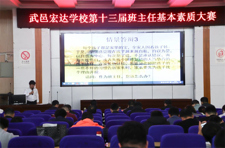 為(wèi)加強學校(xiào)班主任隊伍建設,進一(yī)步提高(gāo)班主任專業(yè)素養和(hé)實踐能(néng)力,落實立德樹(shù)人(rén)根本任務,貫徹習(xí)近(©jìn)平總書(shū)記“四有(yǒu)”好(hǎo)老(lǎo)師(shī)和(hé)“四個(gè)引路(lù)人(rén)"”重要(yào)指示精神。10月(yuè)25日(rì)至10月(yuè)26日(rì),我校(xiào)在報(bào)告廳內(nèi)舉辦了(le)武邑武羅學校第十←三屆班主任基本素質大(dà)賽。