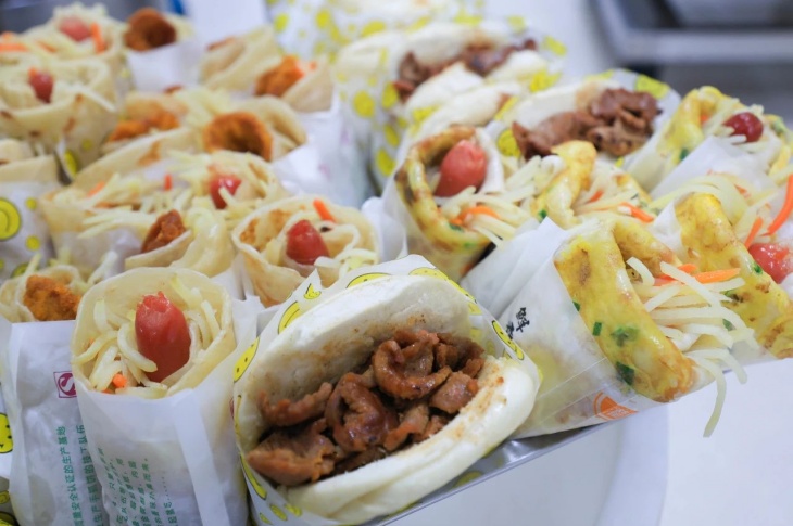 清晨的(de)肉餅、油條、卷餅