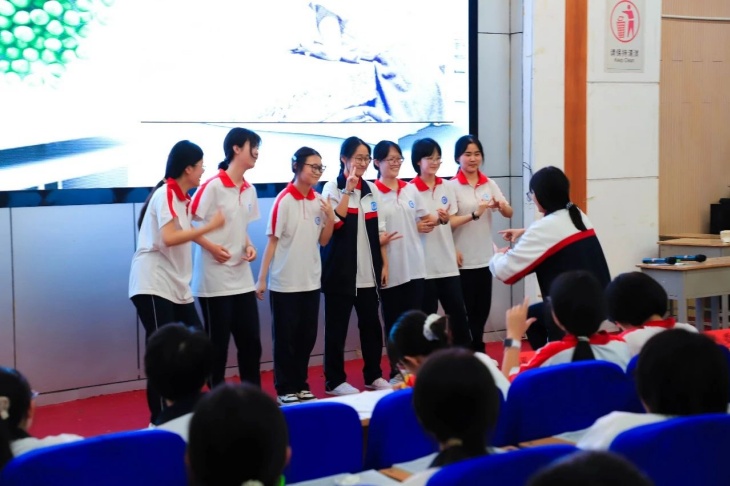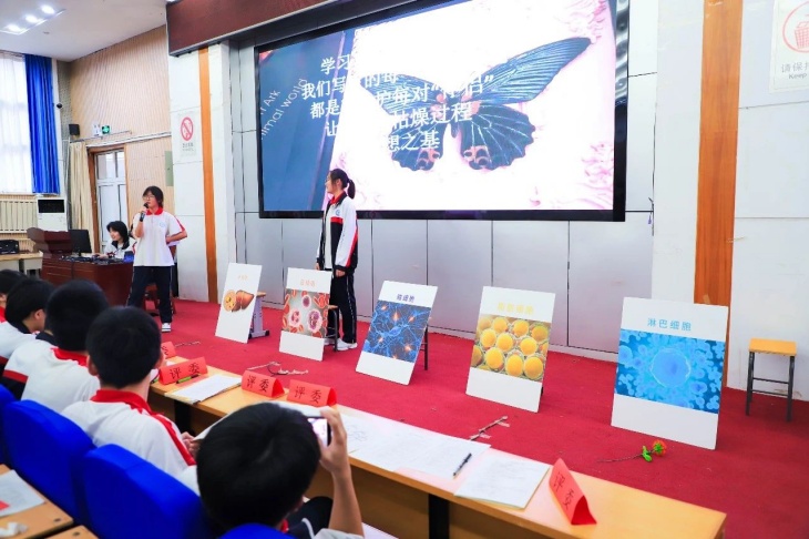 本次活動由高(gāo)一(yī)年(nián)級的(de)同學們自(zì)主策劃、編劇(jù)、排練,9個(gè)節目各個(gè)亮(liàng)點十足。這(zhè)裡(lǐ)有(yǒu)曆史人(rén)物(wù)穿越時(shí)空(kōng)對(duì)話(huà),風(fēng)雲激÷蕩,有(yǒu)平行(xíng)世界上(shàng)演大(dà)戰,科(kē)幻色彩十足,有(yǒu)武中事(shì)變、α宏達談判,“間(jiān)諜”入侵,甚至有(yǒu)摩爾根的(de)果蠅實驗幻化(huà)一(yī)場(chǎng)奇幻夢境見(jiàn)證果蠅的(de)全體(tǐ)代表大(dà)會(huì),白(♦bái)細胞等生(shēng)物(wù)細胞也(yě)“非誠勿擾”進行(xíng)了(le)一(yī)場(chǎng)腦(nǎo)洞大(dà)開(kāi)的(de)歡樂(÷yuè)相(xiàng)親……同學們身(shēn)著(zhe)精心準備的(de)服裝,用(yòng)生(shēng)動的(de)台詞、誇張的(de)肢體(tǐ)動作★(zuò)和(hé)充滿感染力的(de)表情,将學科(kē)知(zhī)識演繹的(de)通(tōng)俗易懂(dǒng)又(yòu)妙趣橫生π(shēng),驚喜不(bù)斷!現(xiàn)場(chǎng)的(de)歡呼聲、掌聲此起彼伏,觀衆們沉浸其中σ,笑(xiào)聲不(bù)斷。