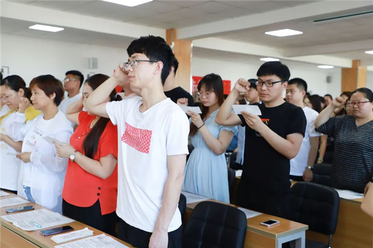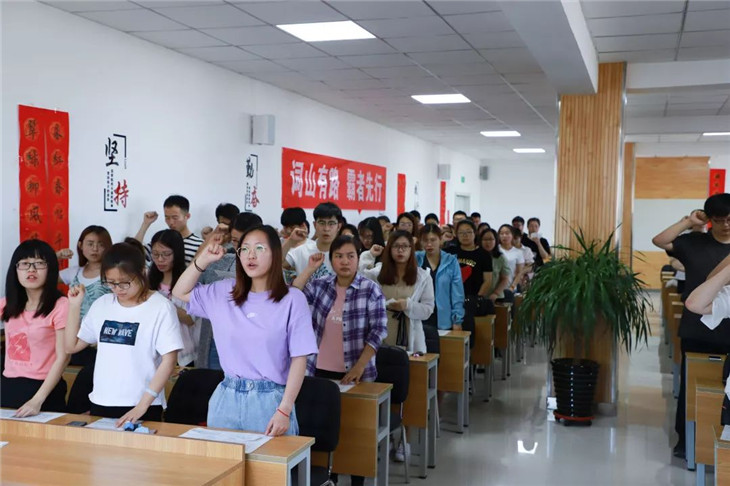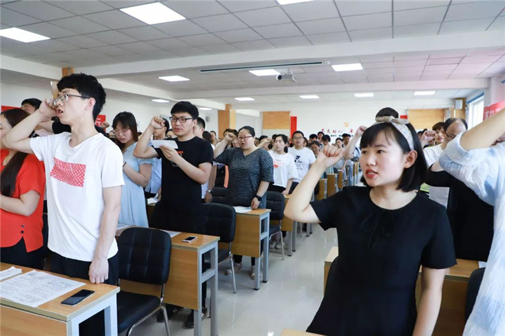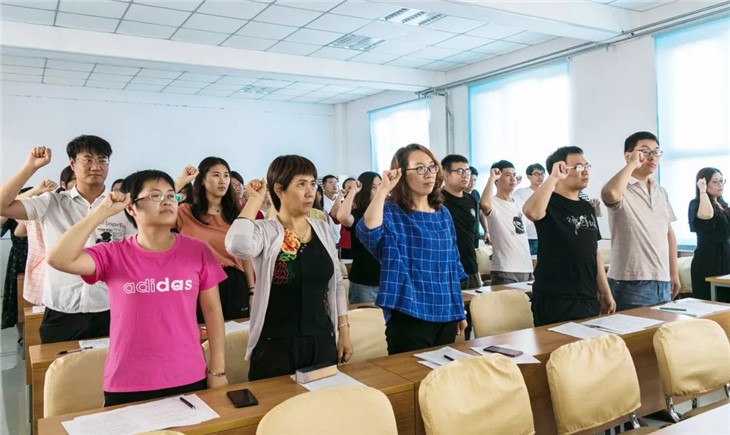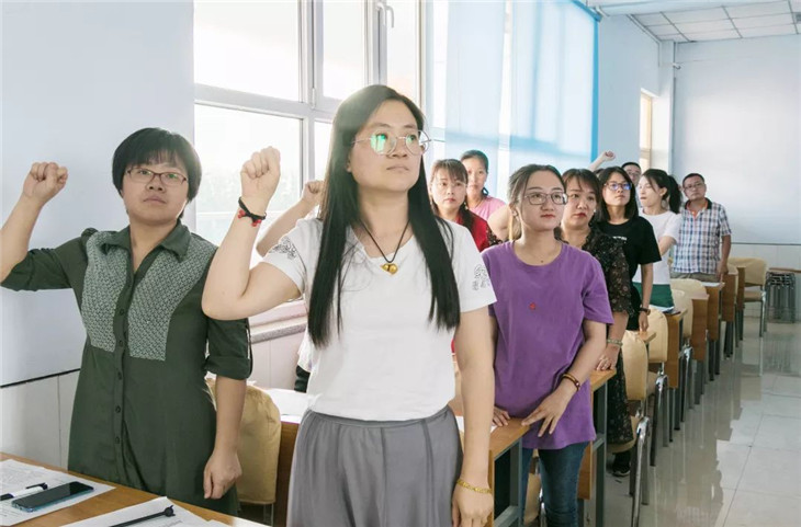 朱啓錦主任帶領全體(tǐ)教師(shī)宣誓