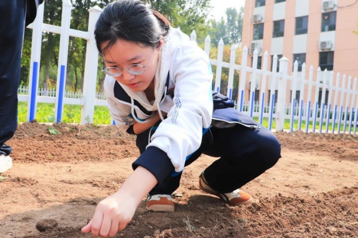 同學們以躬身(shēn)之姿觸摸土(tǔ)地(dì)