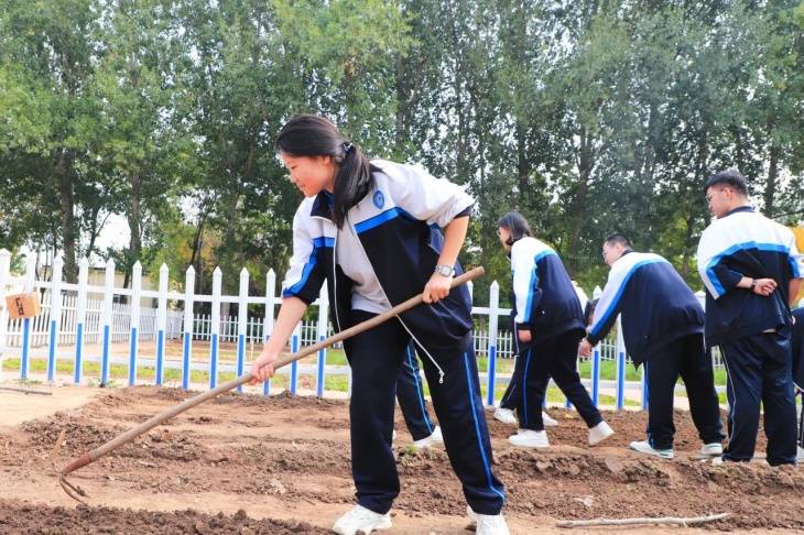 種植基地(dì)中老(lǎo)師(shī)與同學們攜手勞作(zuò)